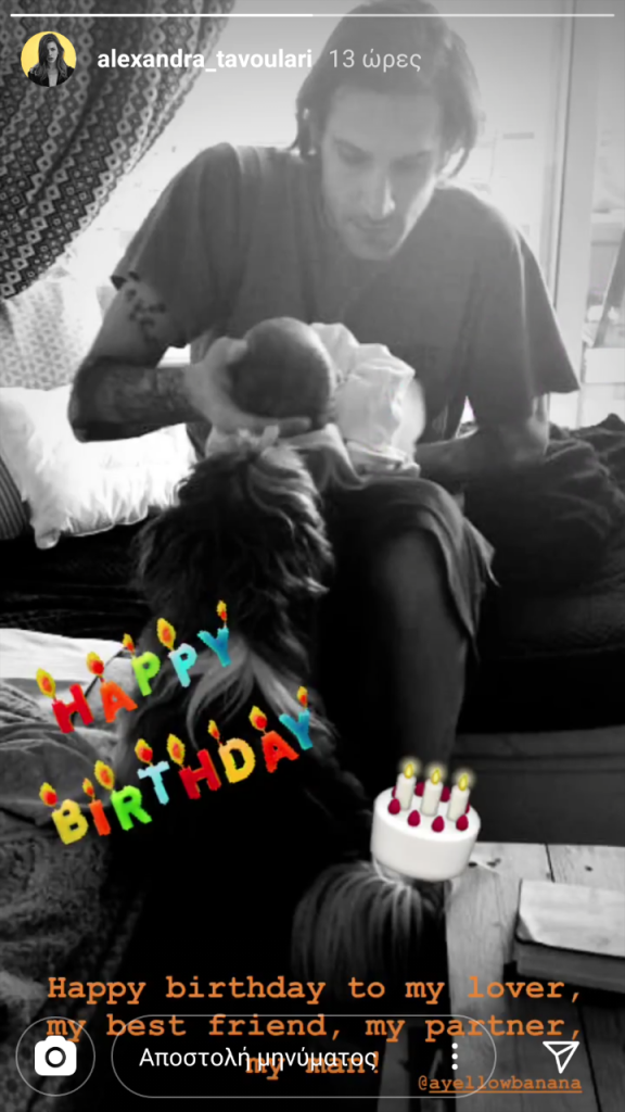 Η Αλεξάνδρα Ταβουλάρη που τη γνωρίσαμε μέσα από τη σειρά του ANT1 Γυναίκα χωρίς όνομα πρόσφατα γέννησε το πρώτο της παιδί και καρπό του έρωτα της με τον Στράτο Διακάκη . Η ίδια λοιπόν χθες καθώς εκείνος είχε γενέθλια θέλησε μέσα από το insta story της να μας δείξει φωτογραφία του συντρόφου της αγκαλιά με το μωρό για πρώτη φορά . Δείτε και τη σχετική της ανάρτηση :
