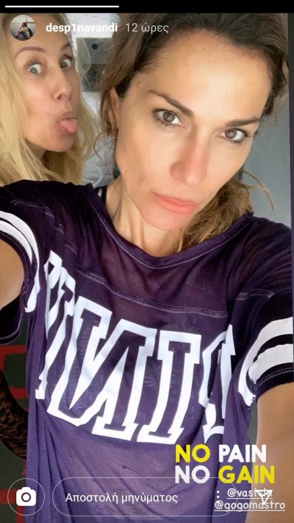 Είναι μια φιλία που κρατάει χρόνια ανάμεσα στη Γωγώ Μαστροκώστα και στη Δέσποινα Βανδή . Μπορεί λοιπόν και οι δυο τους να έχουν πολλές επαγγελματικές υποχρεώσεις όμως φροντίζουν να βρίσκουν χρόνο και να πηγαίνουν μαζί γυμναστήριο. Μάλιστα η Δέσποινα Βανδή μας έδειξε μέσα από το insta story της και μια φωτογραφία τους όπου ποζάρουν μαζί χωρίς ίχνος μακιγιάζ. Δείτε και τη σχετική τους ανάρτηση :