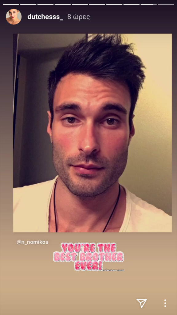 Η Δούκισσα Νομικού απέχει εδώ και καιρό από τη τηλεόραση αφού πλέον πρώτη της προτεραιότητα είναι μόνο η οικογένεια της . Η ίδια όμως παρόλα αυτά είναι αρκετά ενεργή στα social media και πιο πολύ στο Instagram όπου και συχνά μας ενημερώνει για το τι κάνει στην καθημερινότητα της . Χθες λοιπόν μέσα από το Insta story της μας έδειξε τον κούκλο αδερφό της Νικήτα αλλά και το μήνυμα που του έγραψε ” Είσαι ο καλύτερος αδερφός ” . Δείτε και τη σχετική της ανάρτηση :